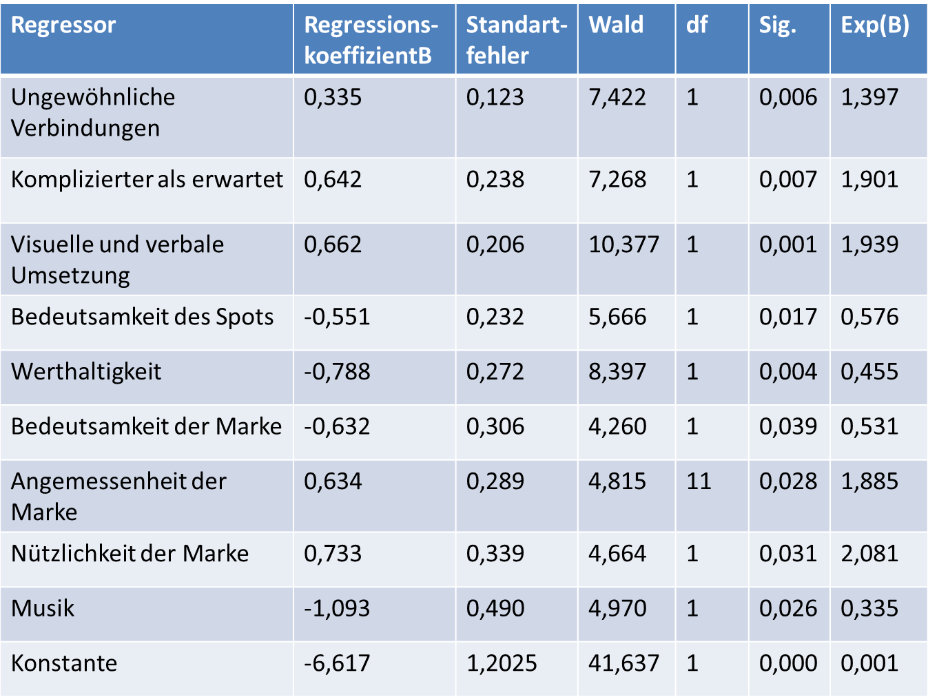 ich habe eine logistische Regression in SPSS durchgeführt. Einschlussmethode Rückwärts LR. Es wurde 30 Regressoren ins Modell gegeben und neun blieben nach der Rückwärtseliminierung über. Bei der Rückwärts oder Vorwärtsmethode lese ich immer wieder, dass man die Signifikanzen dabei vergessen kann, aber wie kann ich dann die Ergebnisse interpretieren? Ich meine Ergebnisse hier mal hochgeladen (ist kein Spamlink oder so):